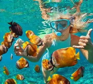 Visitors can learn about the island's history while taking memorable photos with tortoises, some weighing over 200 kilograms. The surrounding waters are perfect for snorkeling, featuring striking coral reefs teeming with colorful marine life.